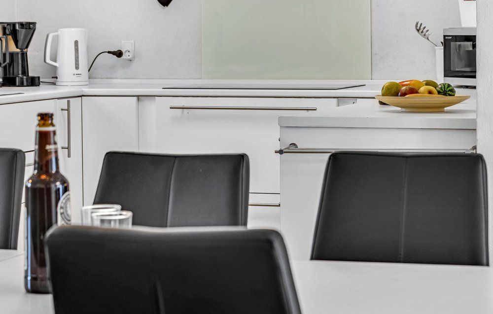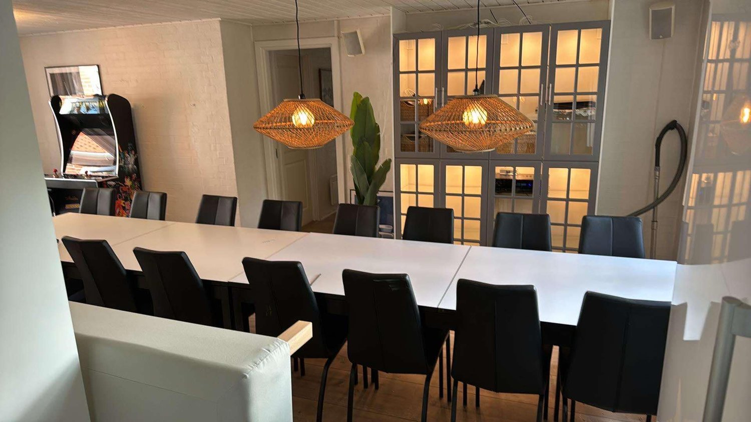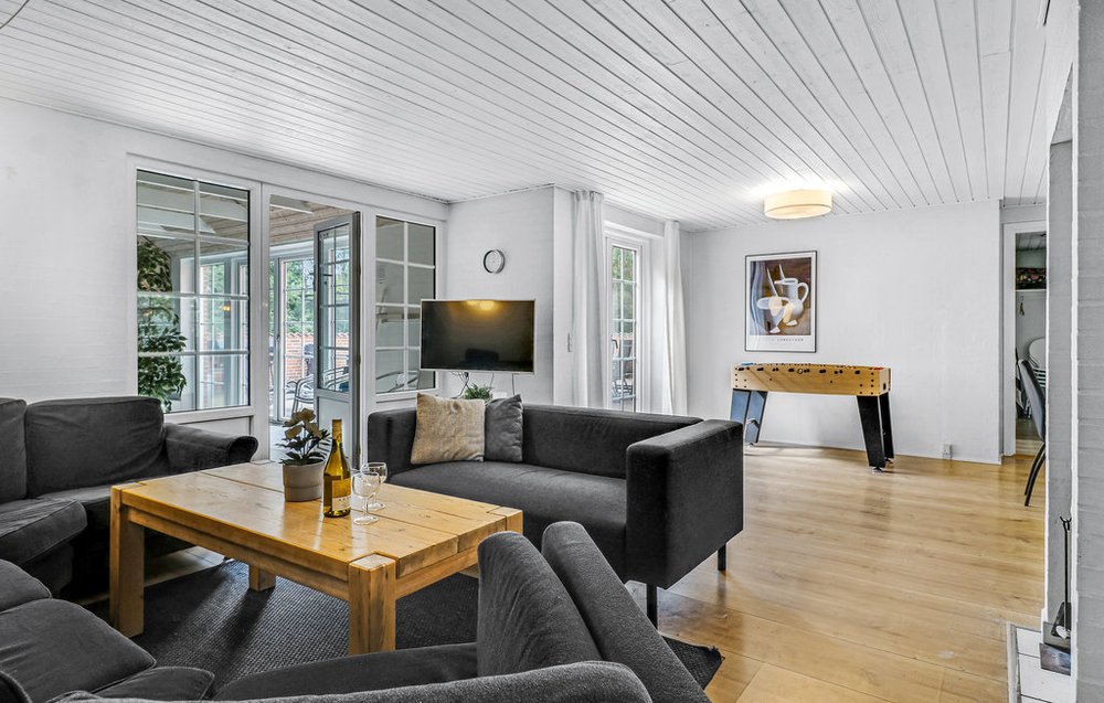 Huset har 8 soveværelser, 3 badeværelser, en stor opholdsstue med køkken, gratis WiFi samt en lukket gård, som gør det ekstra børnevenligt. Her er plads til både leg, hygge og ren afslapning.