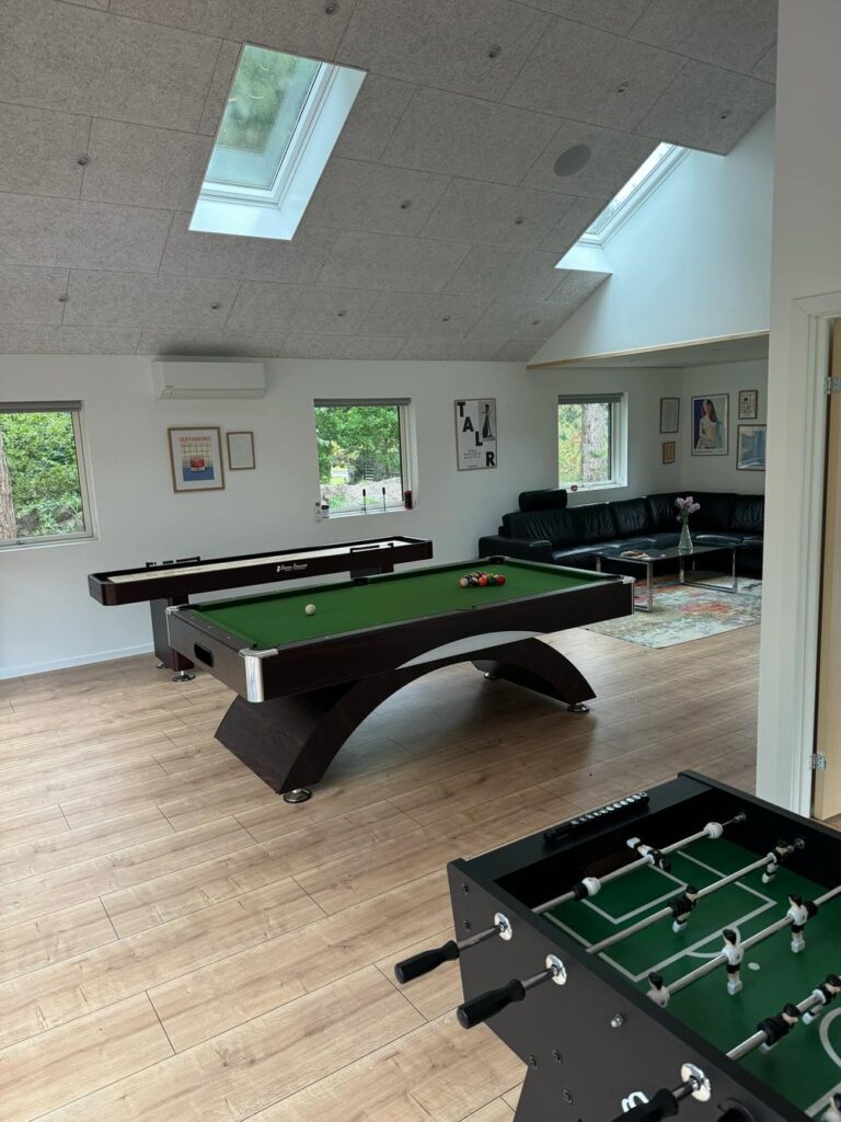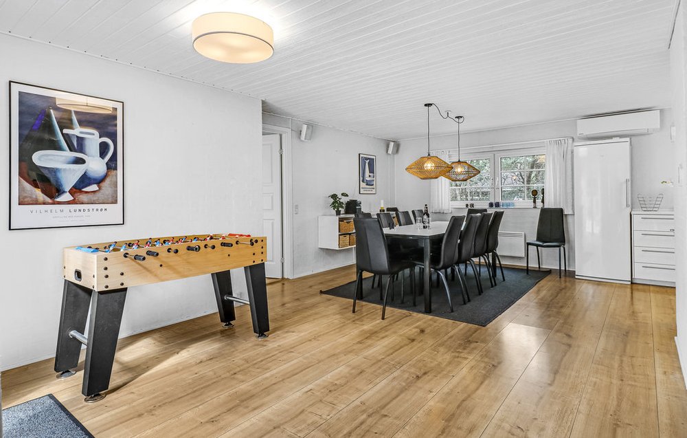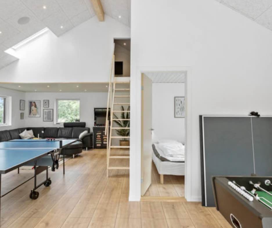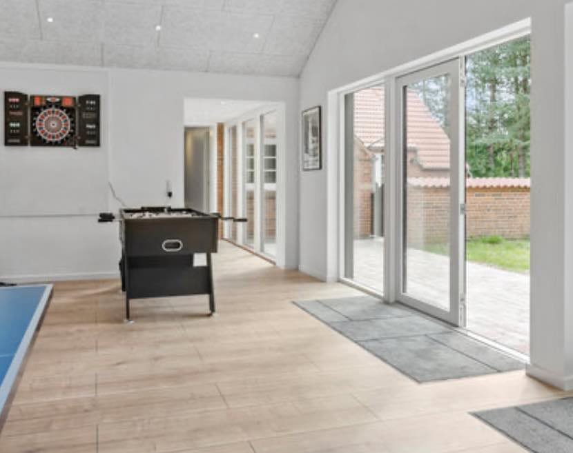 Her får I alt, hvad der skal til for en aktiv og afslappende ferie. Indendørs finder I 18 m2 swimmingpool med børnepool, spa, sauna, PS4/PS5, bordfodbold, billard, arkademaskine og shuffleboard. Udendørs er der trampolin, kæmpeskak, fodboldmål og terrasse med grill og havemøbler.