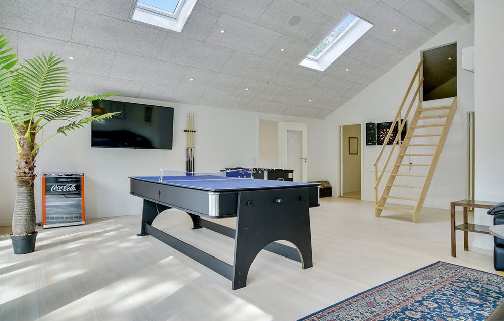 Her er der alt til både aktive og afslappende ferier. Indendørs finder I 15 m2 swimmingpool, spa, sauna, airhockey, bordtennis, bordfodbold, shuffleboard, billard og Playstation med gamerstole. Udendørs er der trampolin, fodboldmål, kæmpeskak og terrassevarmer, så sommerhyggen kan fortsætte hele dagen.
